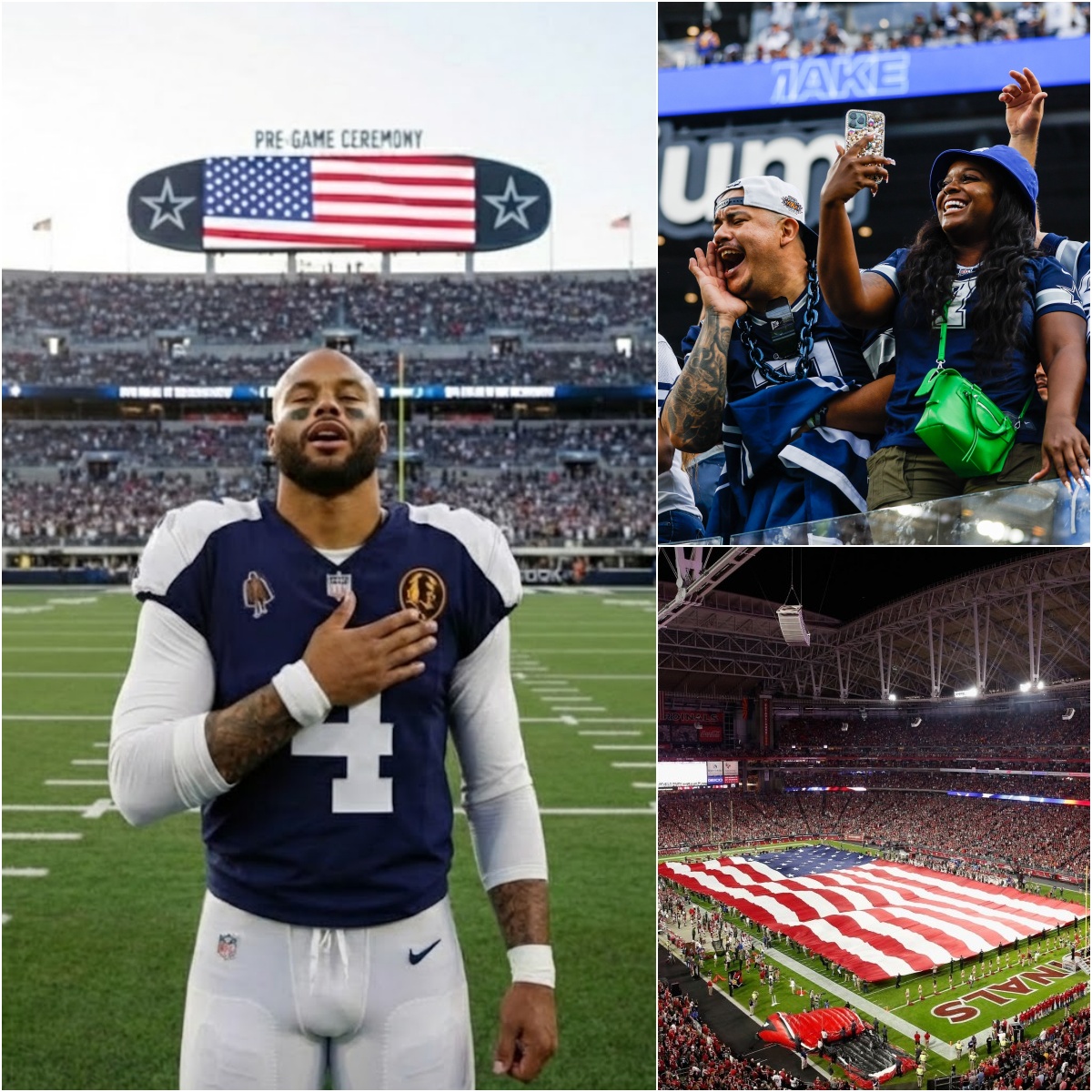 The stadium went quiet — not the restless quiet before kickoff, but a rare, reverent silence. No pyrotechnics. No hype video. Just Dak Prescott, standing alone beneath the lights.