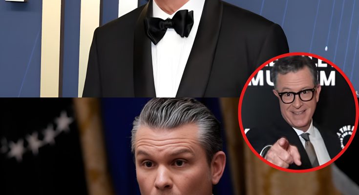 What began as a typical monologue quickly shifted into unfamiliar territory when Colbert invoked Pete Hegseth’s name with a tone so deliberate it signaled that this was no ordinary comedic jab prepared for easy laughter.