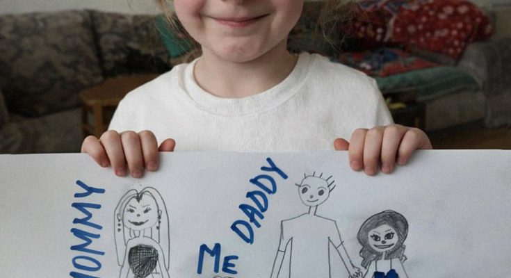 It was my daughter’s picture of four stick figures who stood hand in hand under a huge yellow star.