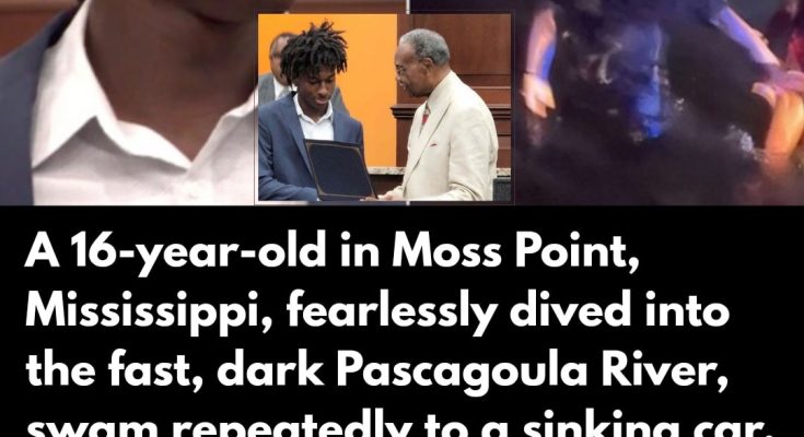He didn’t wait for orders, backup, or certainty he’d survive. When the car plunged into the Pascagoula River, three teenage girls clung to its roof as the water rose and the current dragged them away. On the shore, 16-year-old Corion Evans saw what was happening and moved before fear could stop him. He stripped down and dove into the dark water, swimming hard against the current, reaching each girl and guiding them, one by one, back toward solid ground.